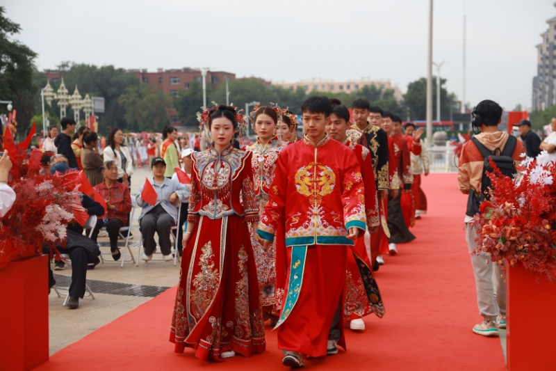 8月28日,“賀儀天成·蘭心相守” 集體婚禮在寧夏賀蘭縣欣蘭廣場舉行。 10對新人身著傳統服飾,在禮樂聲中完成執手盟誓、彩撒賀喜等傳統儀式,用一場簡約而莊重的集體婚禮,踐行“抵制高額彩禮、倡導文明新風” 的承諾?!凹饶芨惺苤腥A傳統文化的魅力,又能為移風易俗出份力,這樣的婚禮特別有…