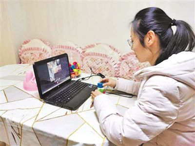 康復中心教師在家開展線上康復訓練課程。 (圖片由受訪者提供)