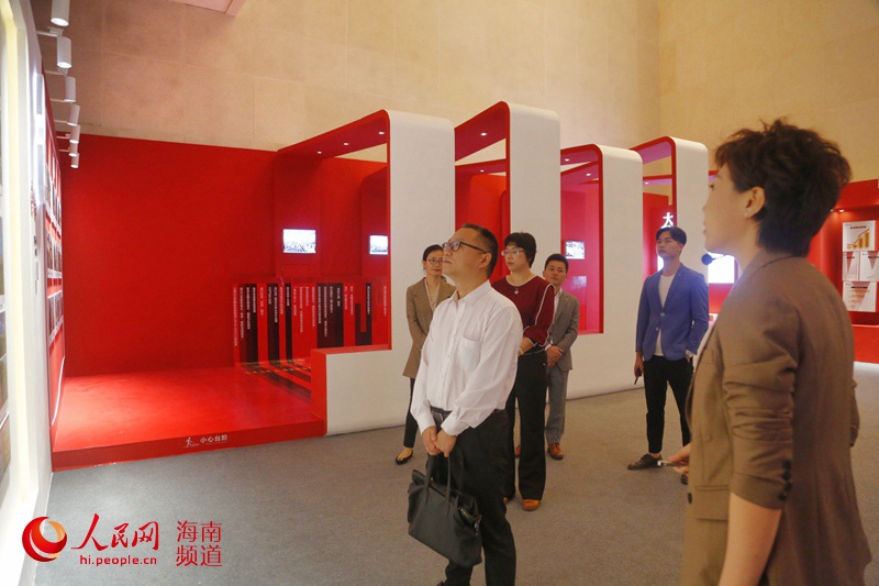 人民日報社海南分社社長趙鵬參觀圖片展。人民網記者枉源 攝