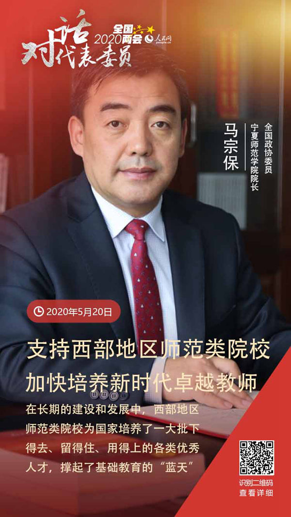 人民網銀川5月20日電(寬容)“在長期的建設和發展中,西部地區師范類院校為國家培養了一大批下得去、留得住、用得上的各類優秀人才,撐起了西部地區基礎教育的‘藍天’!苯衲耆珖鴥蓵,全國政協委員、寧夏師范學院院長馬宗保建議,國家支持西部地區師范類院校加快培養新時代卓越教師,讓優秀的孩子愿意進入師范院校學習。