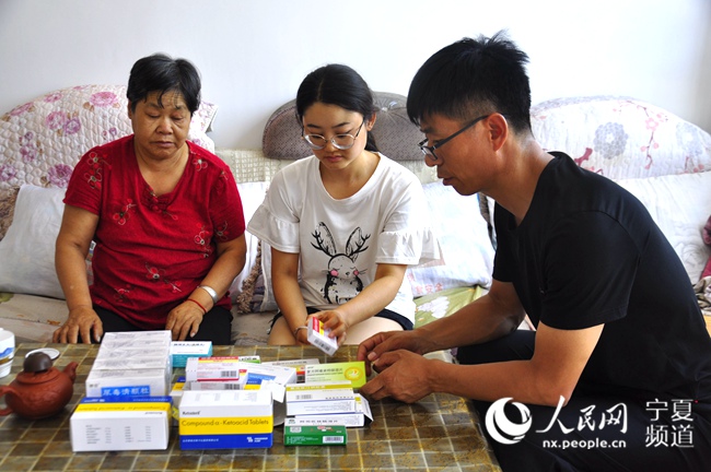 大武口區富民村駐村第一書記馬占鋒(右)到貧困戶家中訪問。吳隆重 攝