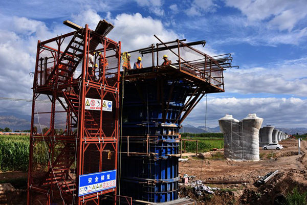 同時,包銀鐵路項目全線走向緊靠“國家地質公園”而行,橫跨公路、鐵路等車流密集路段,如何克服地震液化、軟土、松軟土及鹽漬土等特殊地質,解決連續梁數量多,跨度大的施工難題便成為當前工作的重點。經多方協調,共對特大橋樁基、梁場支座、大臨用地等7處場地的設計方案進行,降低了施工成本提高了工效。