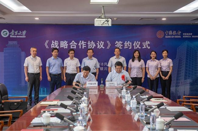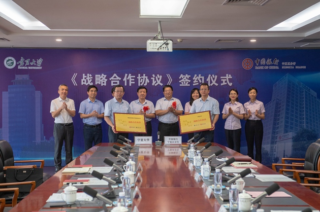 中國銀行寧夏分行與寧夏大學簽訂戰略合作協議。(圖片由中國銀行寧夏分行提供)