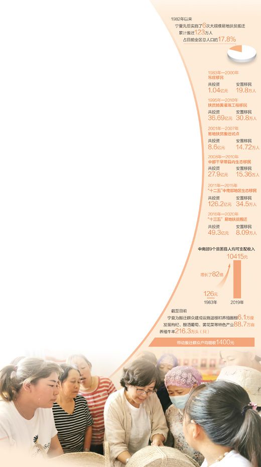 搬開千百年來壓在身上的“貧困大山”,靠的是什么?靠的是黨中央堅強有力的領導,自1982年黨中央實施“三西”扶貧以來,寧夏先后組織6次大規模易地扶貧搬遷,共計123萬人遷出;靠的是廣大黨員干部的無私奉獻、接續奮斗,他們敢闖敢試,團結帶領群眾搬出大山,發展產業,一步步過上好日子……