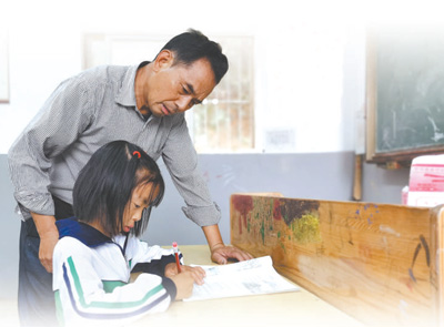 在袁清山辦公桌對面的黑板上,寫著教師的5種精神:“不計得失的犧牲精神、不甘落后的拼搏精神、愛生如子的園丁精神、認真執教的敬業精神、終身從教的獻身精神!边@是袁清山的自我要求,更是他從教以來始終如一的身體力行。完備的規章、豐富的教案、一絲不茍的課程安排……袁清山說,不論有幾個學生,他都愿意堅持教下去,讓更多孩子接受應有的教育,一個孩子都不能放棄。