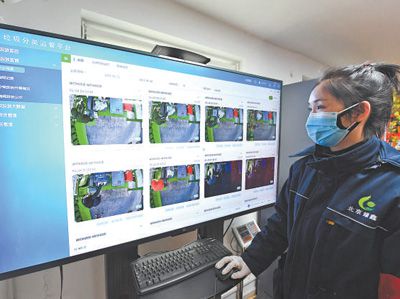圖為在北京市海淀區中關村街道西里社區垃圾分類驛站管理中心,工作人員通過垃圾分類監管平臺了解垃圾分類驛站的垃圾投放情況。