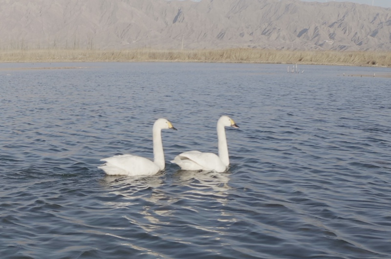 在青銅峽庫區濕地自然保護區棲息的白天鵝。魏鵬攝