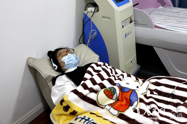 “有些患者一閉上眼,海里浮現出的場景讓他緊張不安,以致無法入睡。對此,我們采用生物反饋療法!彼咧行男睦碇委煄熗醪┤罕硎,該療法通過實時監測患者的情緒反映并具象化,如緊張則出現火山、放松愉悅則出現花,再配合以語音疏導,讓患者識別其緊張情緒并學習放松身心,從而更好入睡。