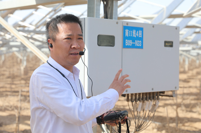 “目前,光伏電站的日;A運維工作只需要除草和擦拭光板灰塵,不僅維護成本低,也可以解決貧困戶就業!眳握裰姓f。