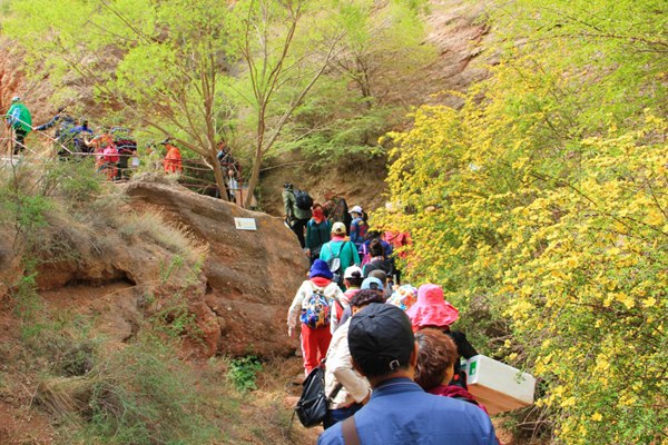 喀斯特地貌+丹霞地貌+野生山花,深春時節這樣的結合,唯在中衛寺口子風景區才能體驗到。每年五月份的寺口山上,各種各樣的山花伴著隨春的腳步,爭相展現著自己的姿色。其中蕁子樹率先綻開金黃色的花朵,黃澄澄的花團中,散發著迷人的芳香,你若是聞一下,就明白寺口所在的山為什么叫“香山”了。