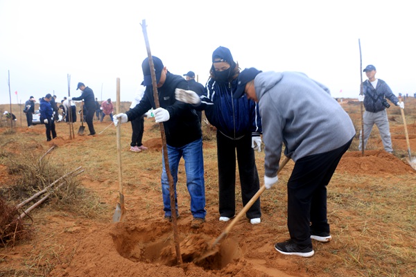 鹽池縣廣大干部群眾為美麗鹽池披綠添色。鹽池縣委宣傳部供圖