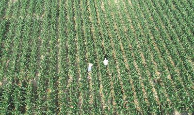 2月24日,玉米育種專家在三亞南繁育種基地觀察玉米生長情況。新華社記者 張麗蕓攝