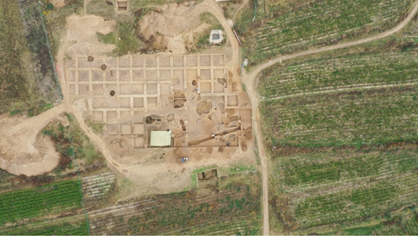 2020年度發掘的鑄銅作坊區航拍圖。寧夏文物考古研究所供圖