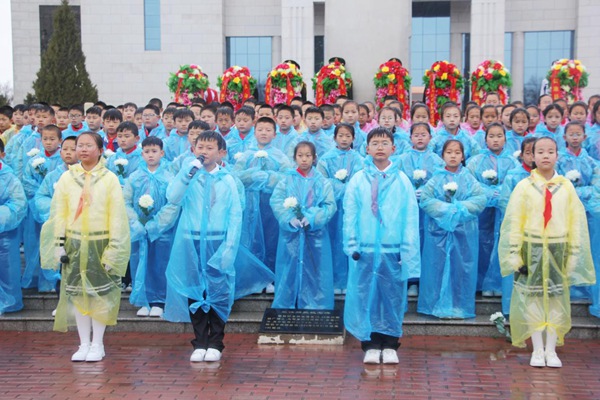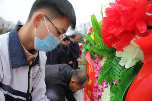 時屆清明,翠柏凝春。和風細雨中,革命烈士紀念碑莊嚴肅穆;顒右潦,全體肅立,奏唱《中華人民共和國國歌》;少先隊員奏唱《中國少年先鋒隊隊歌》;全場脫帽,向革命烈士默哀并敬獻花籃;烈士遺屬、退役軍人、團員青年、學生代表緩步走向紀念碑,仔細整理花籃緞帶,表達對革命烈士的哀思。隨后,少先隊員代表進行了獻詞。