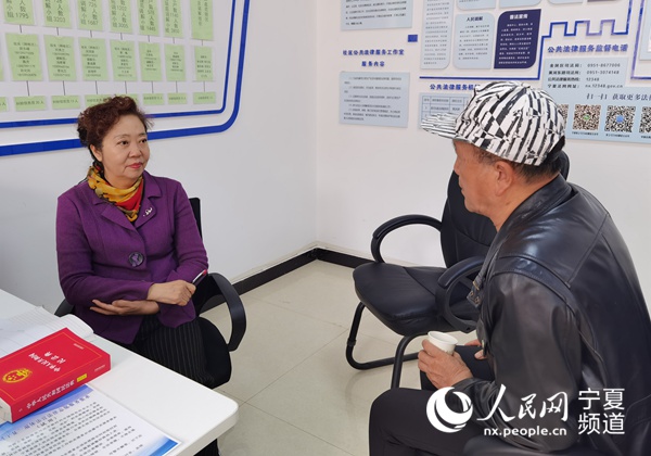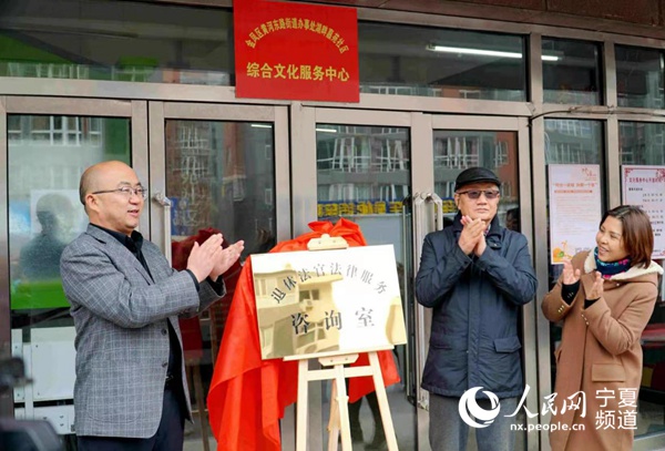金鳳區湖畔嘉苑社區退休法官法律咨詢服務室接待法律咨詢。人民網 高嘉蔚攝