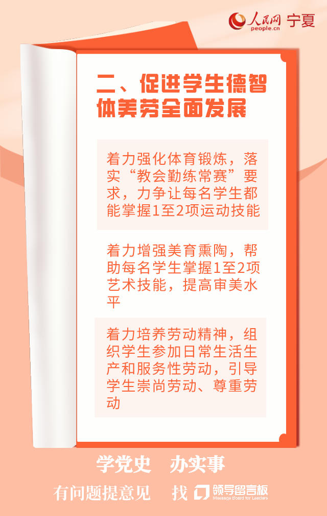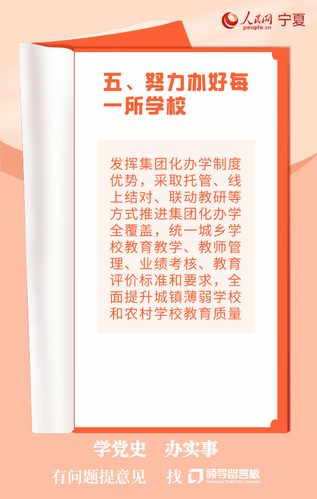 黨史學習教育開展以來,寧夏回族自治區教育系統按照學史明理、學史增信、學史崇德、學史力行總體要求,圍繞學黨史、悟思想、辦實事、開新局,堅持以人民為中心發展教育,把學習教育同推動工作結合起來,同解決群眾“急難愁盼”的具體問題結合起來,推出六項舉措提升基礎教育,滿足孩子們上好學的愿望。