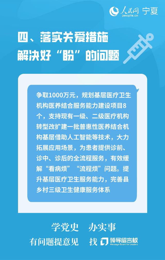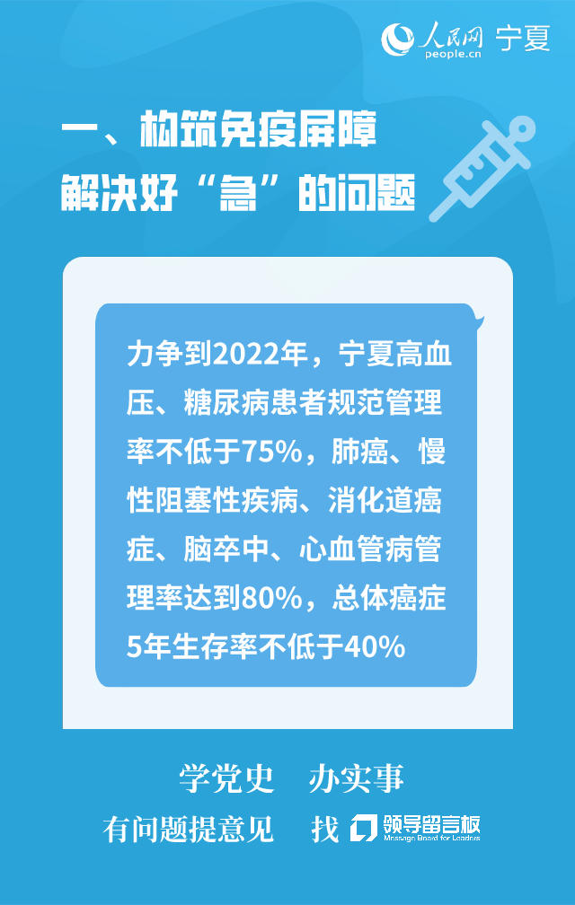 人民健康是民族昌盛和國家富強的重要標志,也是廣大人民群眾的共同追求。寧夏回族自治區黨委第十二屆十二次全會提出“要大力實施全民健康水平提升行動”,對“全面推進健康寧夏建設”作出了重大部署,明確了具體要求和實施路徑!笆奈濉睍r期,寧夏將采取更加有力的舉措,把全民健康提升到一個新的水平,把全面推進健康寧夏建設的各項任務落到實處,進一步夯實增進民生福祉的健康基石。