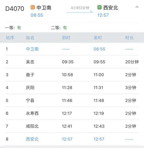 人民網銀川4月28日電 (梁宏鑫)今天上午,隨著D4070次列車從中衛南站開出,駛向西安,結束了寧夏中衛至陜西西安沒有直達動車組列車的歷史。列車全程運行時間4小時,二等座269元。