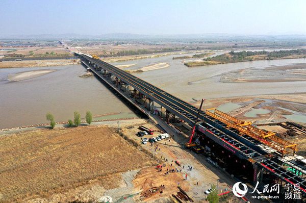 烏瑪高速公路鎮羅黃河特大橋合龍。 人民網 梁宏鑫攝
