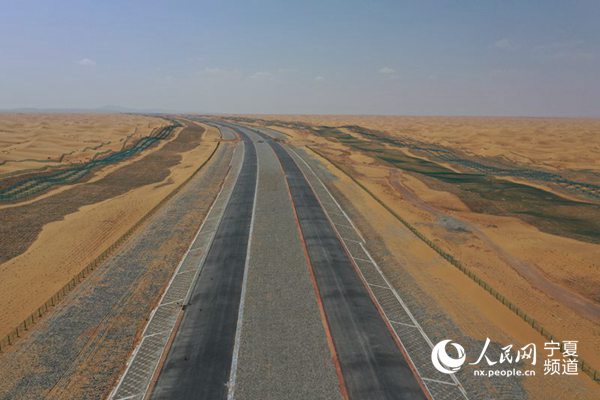 烏瑪高速騰格里沙漠段。 人民網 梁宏鑫攝