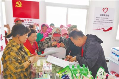 5月22日,石嘴山市惠農區廟臺鄉省嵬村村民拿著積分卡來到新時代文明實踐站兌換獎品。該村創新鄉村治理機制,將德治、自治、法治、共治相結合,不斷激發群眾內生動力,推動鄉村振興。 記者 李良 攝