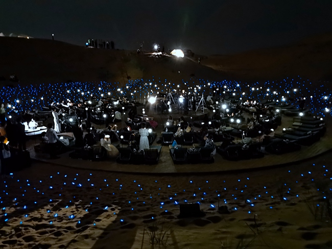 梵克雅寶全新主題珠寶展是首次在中國國內發布,主辦方在國內考察了北京八達嶺長城、香格里拉等七個城市的風景名勝區后最終選擇在寧夏中衛沙坡頭星星酒店包場舉辦。珠寶設計靈感演繹變幻的豐富作品,動人之形,奪目之線與繽紛之彩展開了一段廣闊無恨的星辰之旅,寶石的魅力隱密于星際之間,與大西北沙漠璀璨星空交輝相應。
