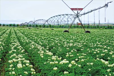 7月6日,固原市原州區中河鄉萬畝馬鈴薯花盛開。今年,固原市引進農業產業化國家重點龍頭企業——雪川農業發展股份有限公司,投資20億元構建馬鈴薯全產業鏈,包括建設年產80萬噸馬鈴薯原料薯、種薯種植基地及40萬噸馬鈴薯綜合加工項目。截至目前,該項目種植馬鈴薯1萬多畝,一期5萬噸加工車間及配套設施計劃明年8月建成投產。 記者 剡文鑫 攝