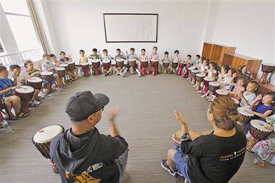7月21日,銀川市婦女兒童活動中心,小朋友們正在公益課堂學習演奏非洲鼓。結合“我為群眾辦實事”實踐活動,暑假期間,銀川市婦女兒童活動中心統籌學校和社會組織等多方資源,精準服務青少年和家長的實際需求,舉辦“七彩暑假 情暖童心”暑期公益課堂,幫助家長解決暑期孩子托管問題,豐富少年兒童的暑期生活。 記者 黨碩 攝