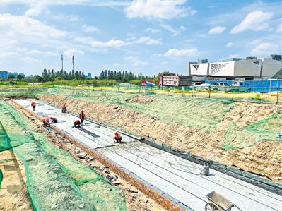 當日,烈日炎炎下的銀川市團結路(寧安北街—民悅街)道路施工現場,工人們正在緊張有序地施工作業!斑@個項目主要為打通斷頭路,建成后,寧夏美術館出入口道路通行問題將得以解決,與周邊路網連接更為便捷!便y川市住建局城鄉建設科工作人員楊珂介紹。