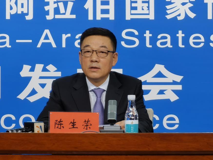 第五屆中阿博覽會執委會會議部副部長陳生榮介紹相關情況。詹思佳 攝