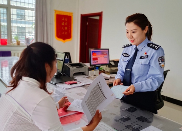 銀川市公安局豐登鎮派出所民警在周末期間辦理戶籍業務。寧夏公安廳供圖