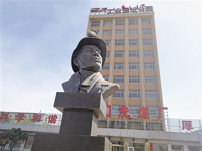 公園門口是一座高高的黑色雕塑,在陽光下閃著烏油油的光芒。雕塑是一個戴著安全帽的煤礦工人頭像,面相樸實俊朗。他仿佛剛剛完成作業從礦井里上來,迎著初升的陽光,眼里透出既欣喜又剛毅的目光。