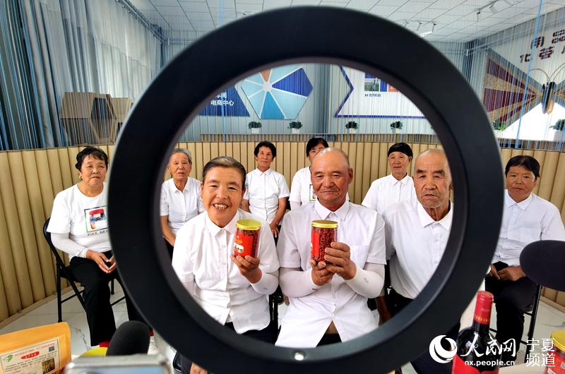 今年8月,一支由9名“銀發”主播組成的鄉村電商團隊“殺”進寧夏電商超能團隊選拔賽100強,在網上引起不小的轟動。這9名新晉主播正是寧夏吳忠市紅寺堡區弘德村電商中心的工人,他們中年齡最大的是78歲,最小的56歲。為了展現不服老的干勁,他們搖身一變,成了電商中心的“網紅”,不僅唱歌跳舞拍短視頻,還通過講紅色故事,吸引網友關注,在網上直播帶貨。