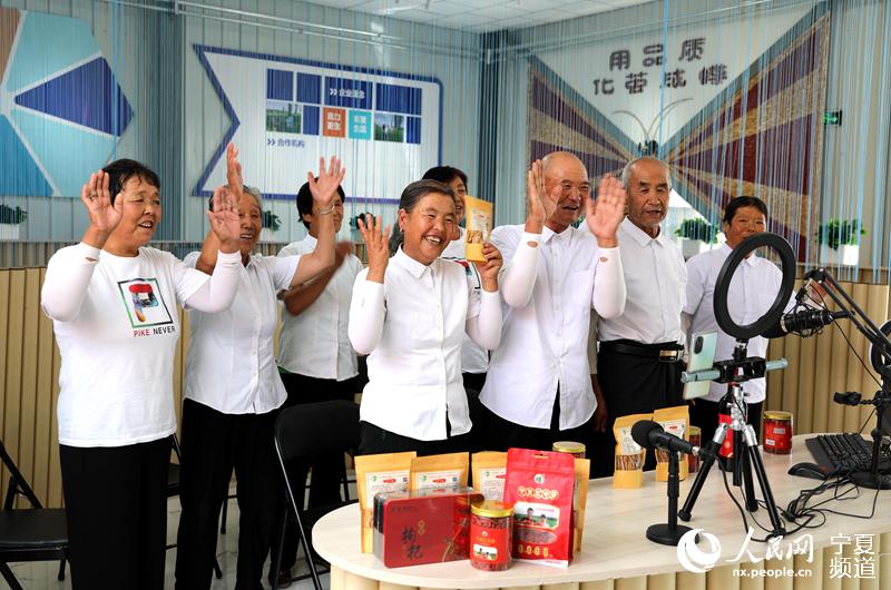 老人們正在向網友介紹寧夏枸杞。人民網 高嘉蔚攝