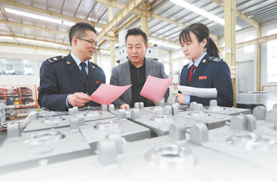 安徽省馬鞍山市慈湖高新區稅務局工作人員為企業職工介紹“放管服”改革政策。王文生攝