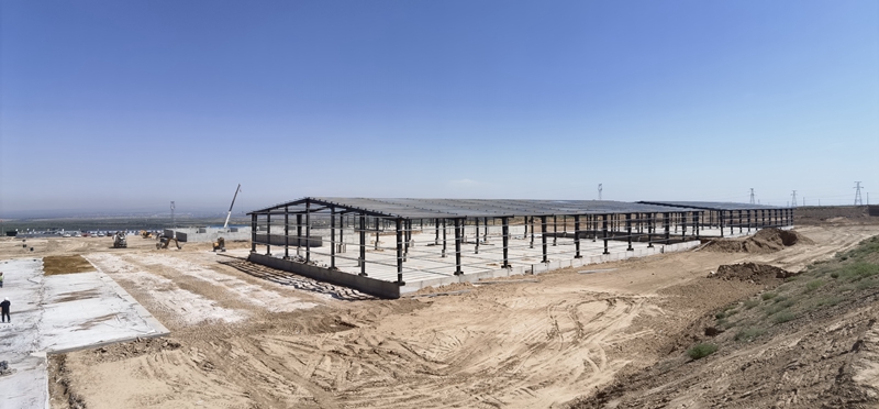 光明牧業的干草飼料棚、牛舍正在加緊施工。沙坡頭區委宣傳部