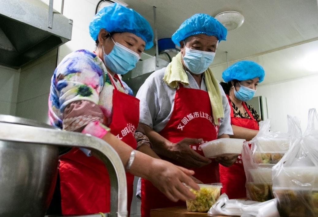 準備送往殘疾人家中的飯菜。張海峰攝