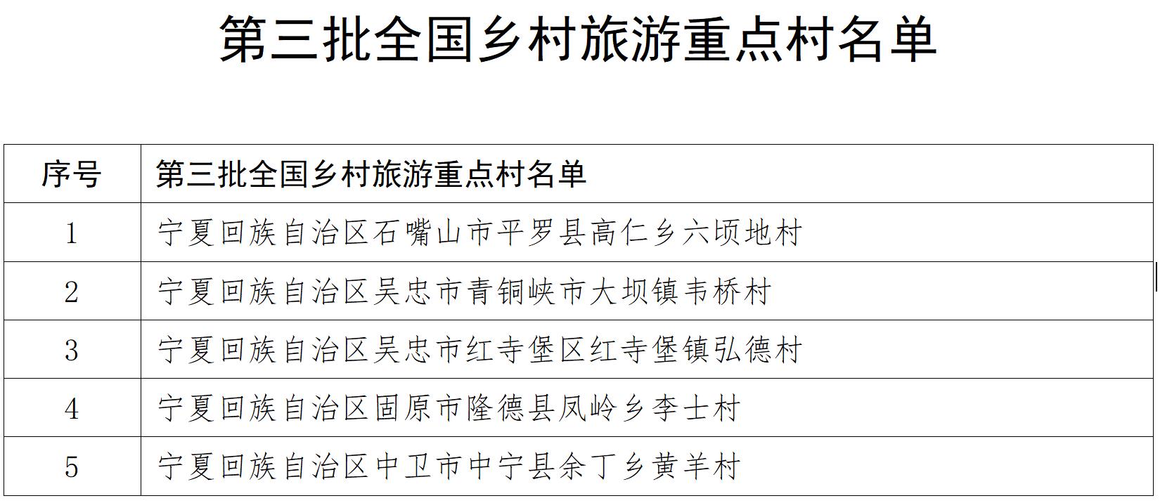 寧夏五村三鎮入選全國鄉村旅游重點村鎮