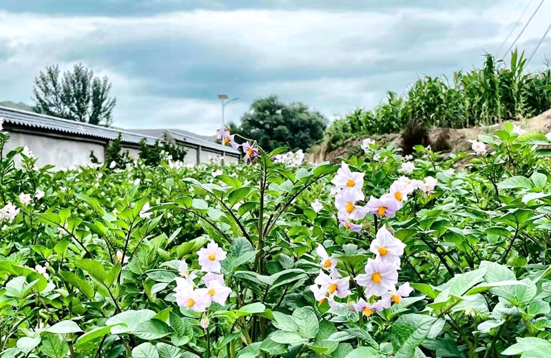 關莊村村民庭院里的土豆開花了。李甜甜攝