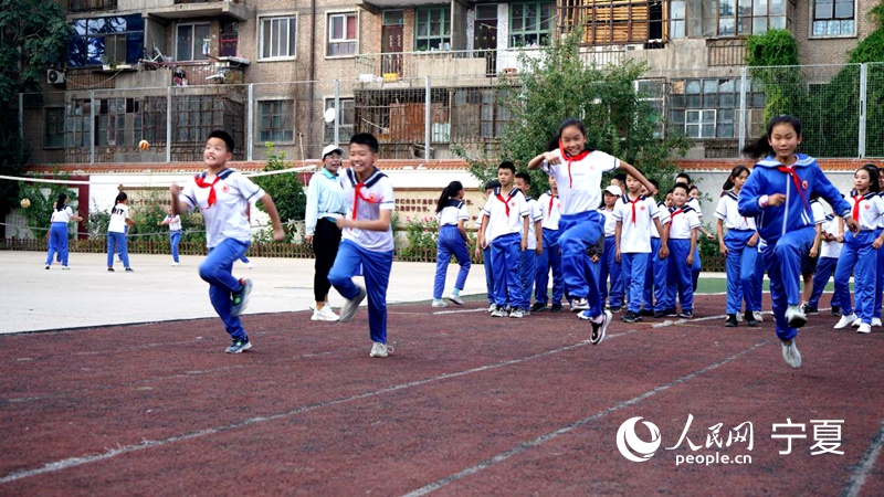 9月8日,銀川市興慶區第三小學學生正在進行課外活動。 人民網 梁宏鑫攝