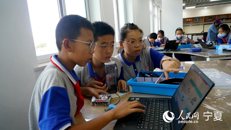 9月8日,銀川市第十五中學生正在進行智能機器人拓展培訓。 人民網 梁宏鑫攝