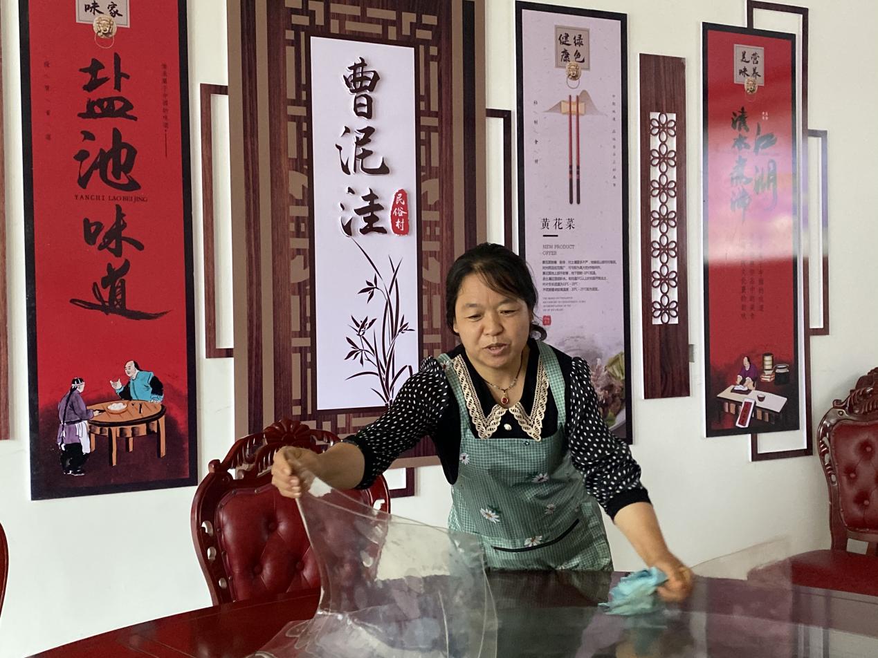 花馬池鎮曹泥洼民俗村一民宿老板沙艷香正在準備營業。人民網 趙茉鈺攝