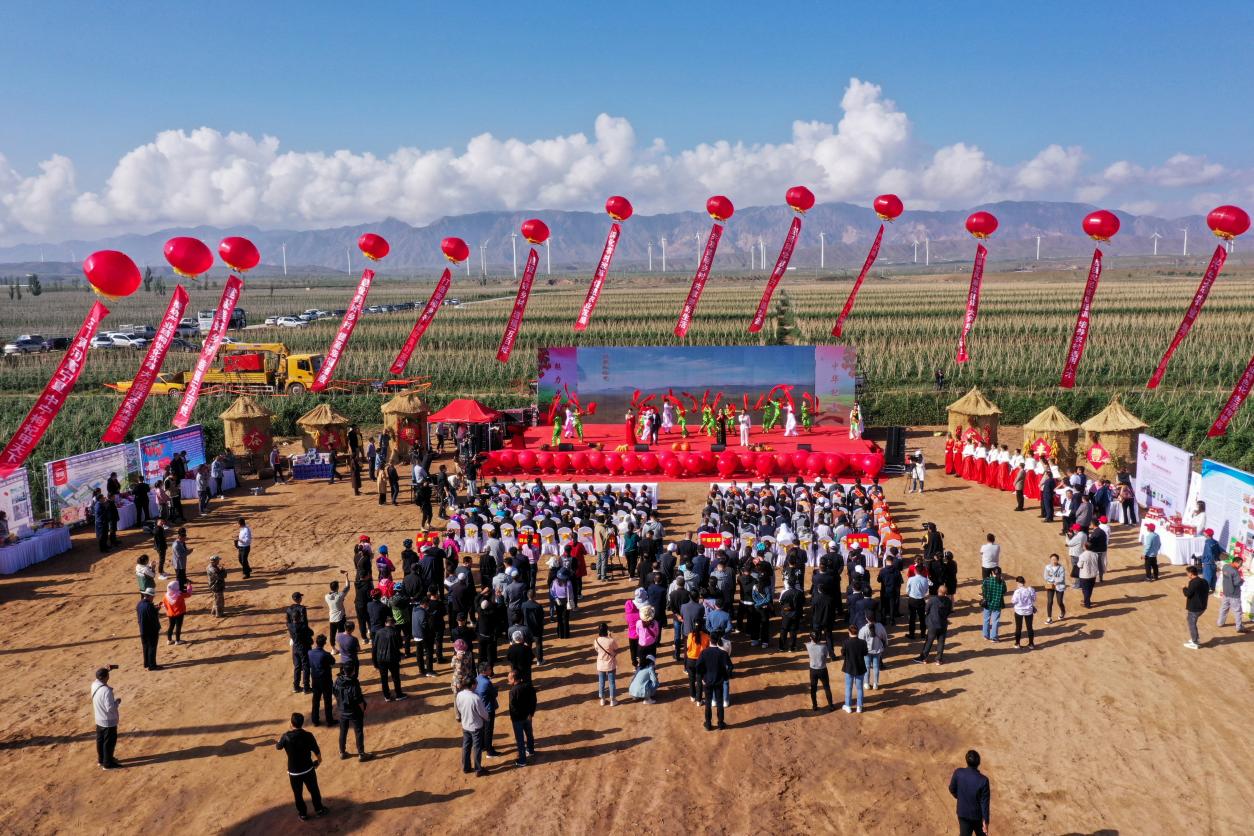 人民網中寧9月16日電 (梁宏鑫)今天上午,寧夏中衛市2021年休閑農業提升年暨中寧縣中國農民豐收節在中寧縣大戰場鎮禹堯莊園開幕;顒右浴皯c豐收、感黨恩、興鄉村”為主題,為期兩天。