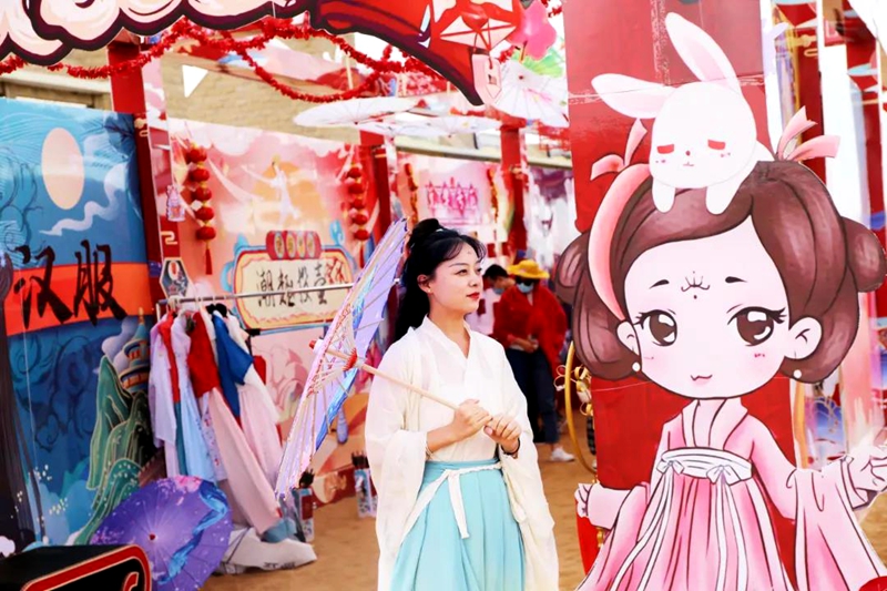游客穿著漢服游覽景區。寧夏文旅廳供圖