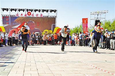 9月21日,石嘴山市惠農區2021年中國農民豐收節暨黃河文化旅游節活動在禮和鄉銀河灣景區開幕。通過“線上+線下”多種形式,開展集產品展銷、文藝表演以及互動游戲為一體的農事娛樂慶;顒,營造慶祝豐收的歡愉氣氛。記者 朱立楊 李良 攝