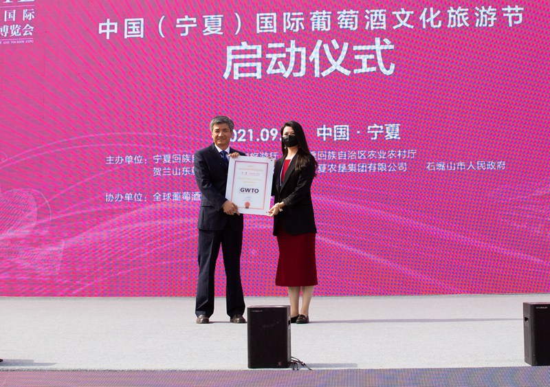 人民網銀川9月26日電(趙茉鈺)26日,以“相約寧夏川·品味賀蘭山”為主題的中國(寧夏)國際葡萄酒文化旅游節啟動儀式在寧夏石嘴山市舉辦。人民網寧夏頻道從會上獲悉,全球葡萄酒旅游組織(GWTO)經過前期考察和評定,決定授予寧夏“全球葡萄酒旅游目的地”榮譽稱號。