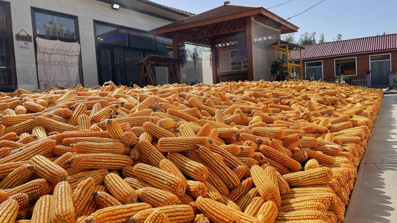 永新村村民家中正在晾曬的玉米。人民網 翟巧紅攝