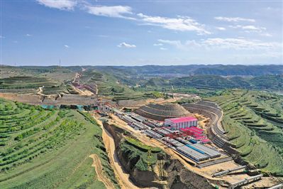 俯瞰銀昆高速公路施工現場,大吊車長長的“手臂”起起落落,裝載車機聲隆隆穿梭其中。 趙磊 攝