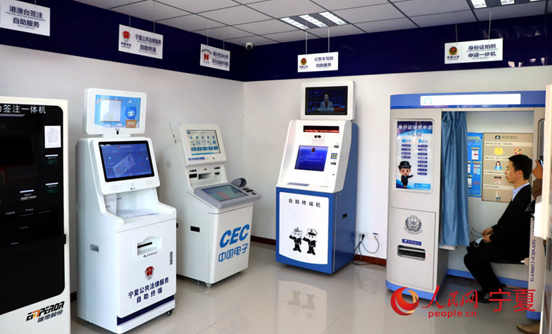 身份證拍照申請一體機、交警車駕管自助服務終端機、銀川市24小時便民自助服務終端機、寧夏公共法律服務自助終端機、港澳臺簽注自助服務機……“24小時自助便民服務區”,是盈北社區黨群服務站8個功能場所中人氣較高的一個,通過全天候的智慧便民服務,實現“讓數據多跑路、群眾少跑腿”。