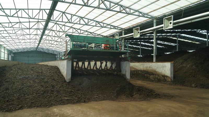 養殖畜禽,糞污污染是個“老大難”問題。為破解這一難題,園區通過學習借鑒、技術創新,建設了一套畜禽糞污資源化循環利用設施,將糞污、作物秸稈等廢棄物經微生物發酵、除臭和完全腐熟后制成有機肥料。